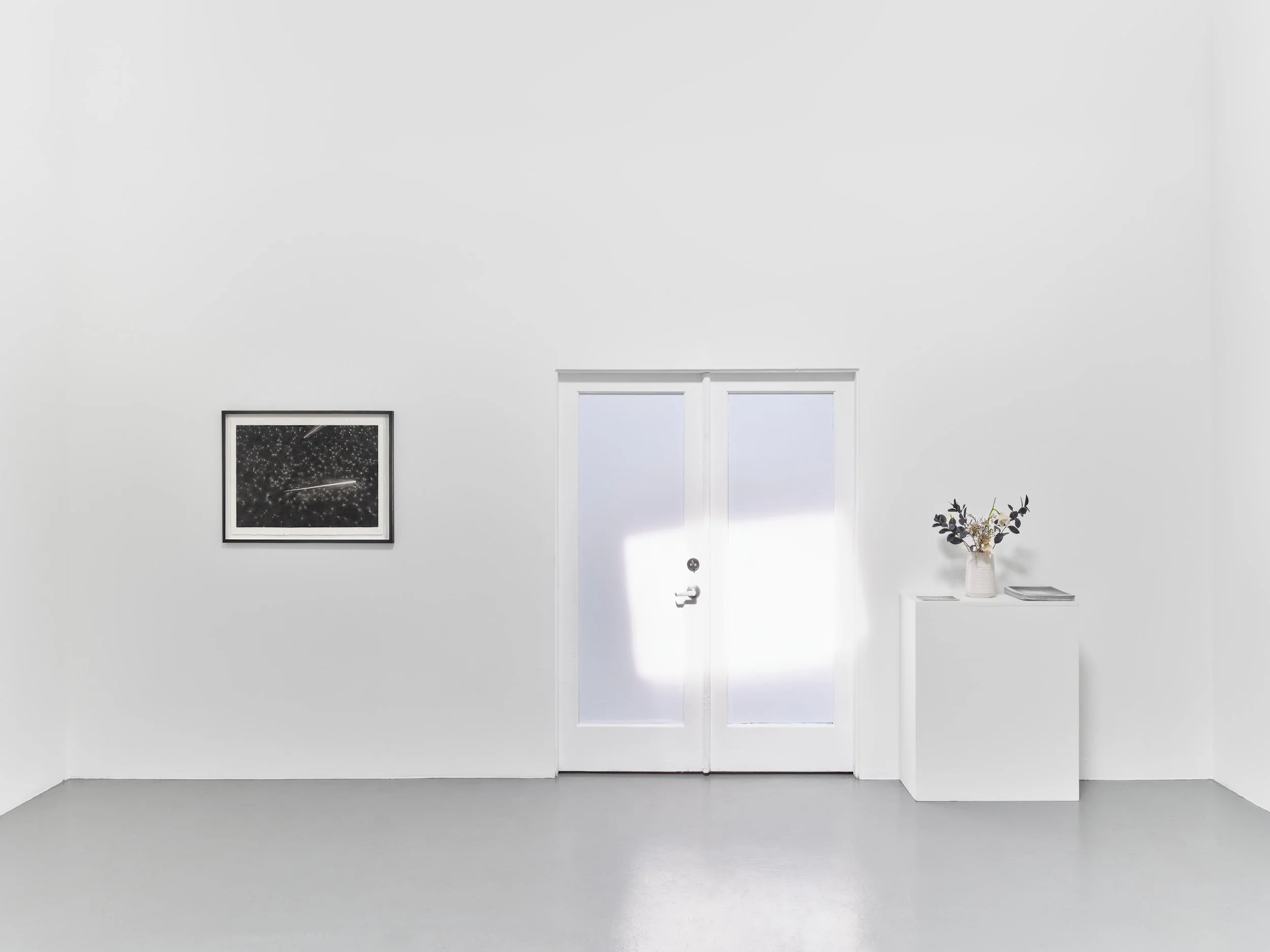 Bringing this limitless, galactic spectacle back to earth, Pascher accounted for the exhibition space, tracking the skylight’s quadrilateral “light shadow” as it moves from morning to evening, and reflecting this information in a series of sun drawings by introducing an element of time, or rather its negation.