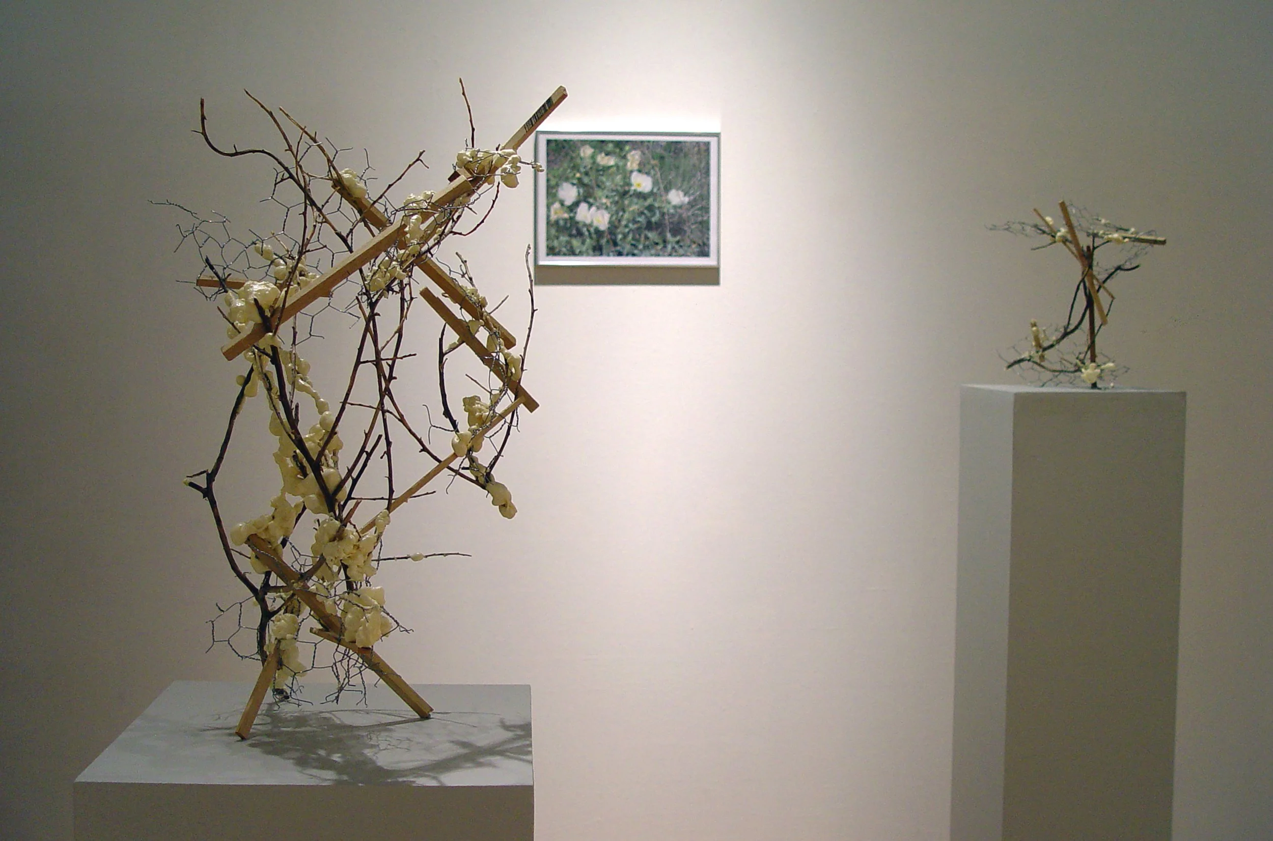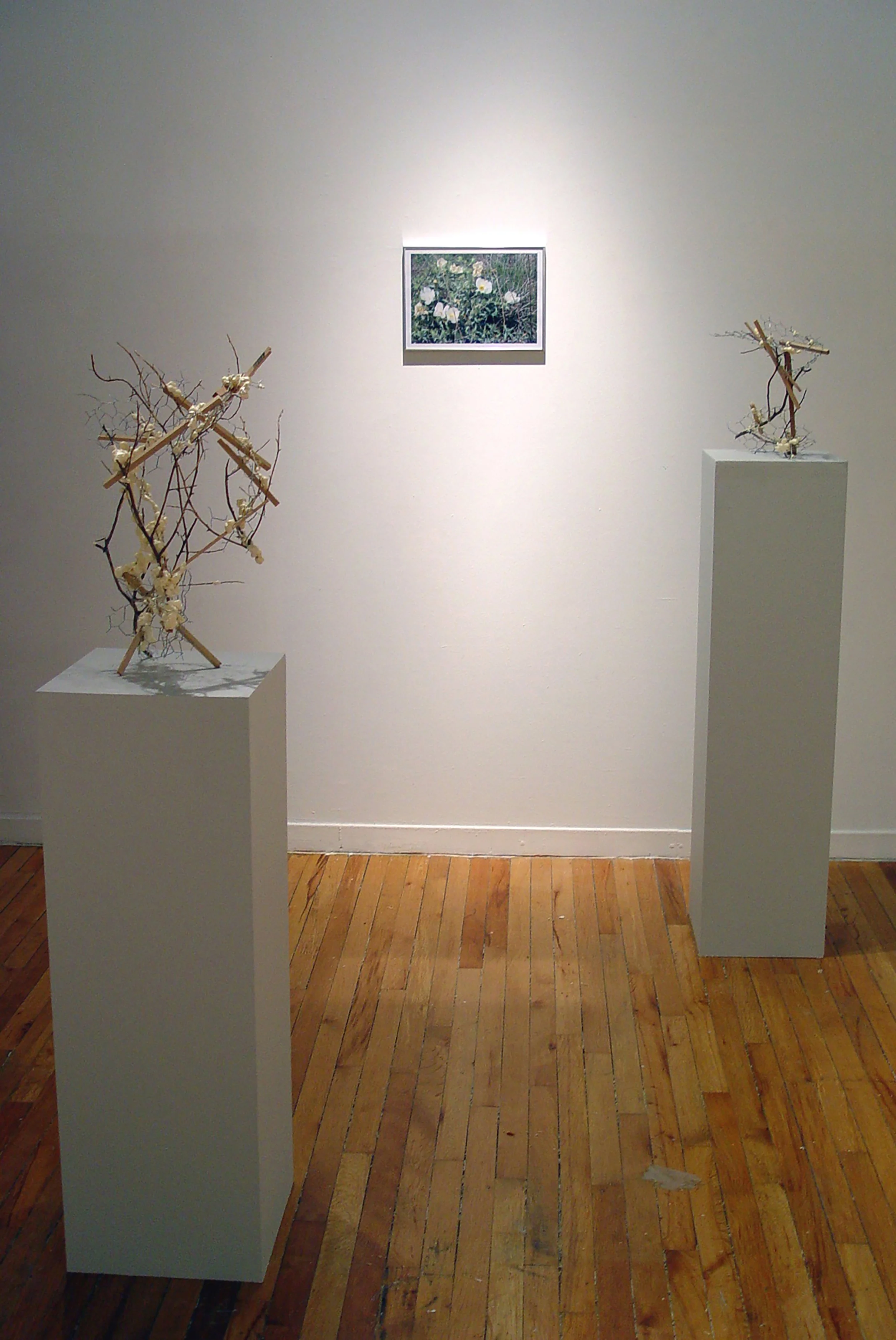 Untiled Sculptures I & II and photograph, "Who got the chickens?" Exhibition, 2009, installation view